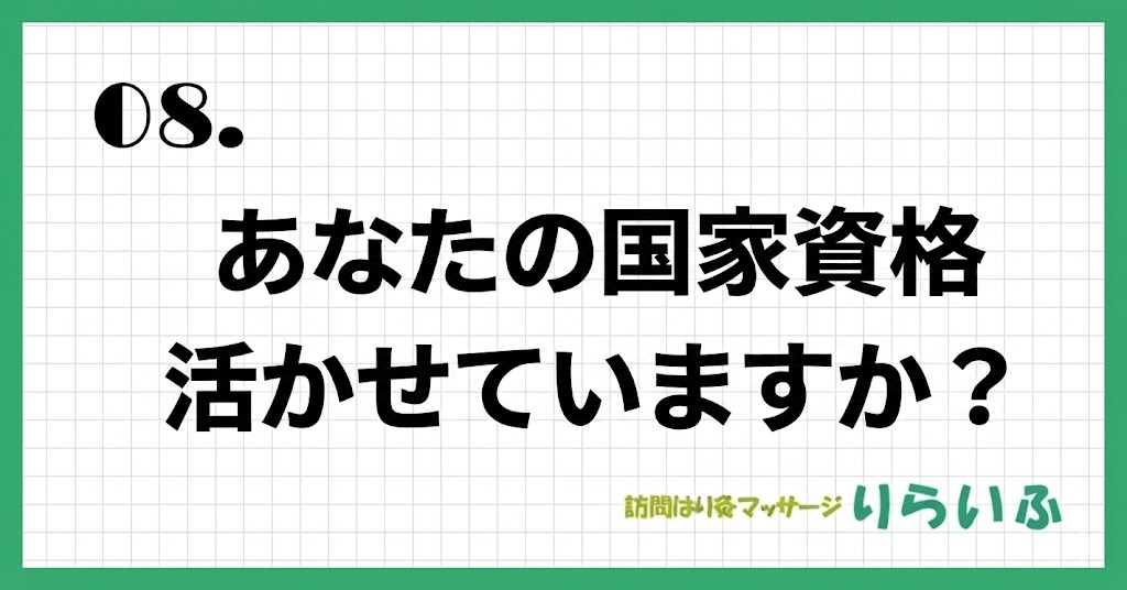 当院では、お客様に安心してご利用いただけるように、施術者に国家資格の取得を義務付けております。