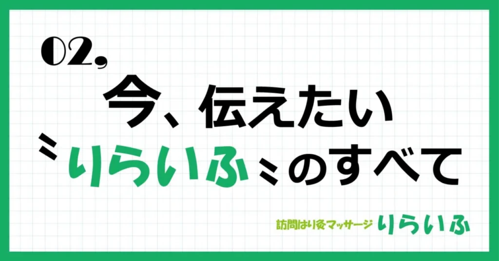 現在は高齢者が増えているため、社会全体で見守っていかなくてはいけません。訪問マッサージを行いつつ、お客様が健やかに生活できているかを確認するために、「今日の体調はどうか」「変わったことはないか」などの確認も一緒に行っております。