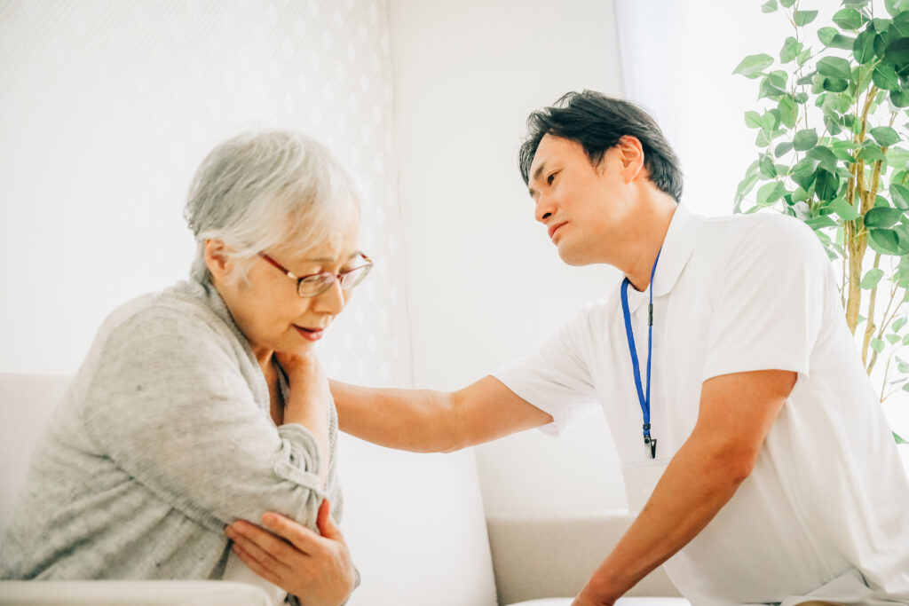 患者さまやご家族にどのような訪問マッサージ・リハビリ・はり灸をするのかを体験していただきます。